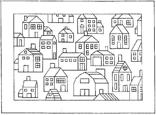 All Around Town rug hooking pattern on Linen 26″ x 36″ by Melissa Elliot.