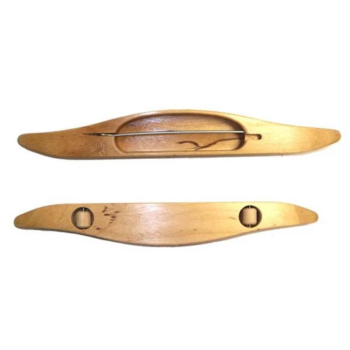 It is designed for weaving fine threads on a wide warp. It is 12 inches in length and holds a 4 inch quill. This is a very popular model.