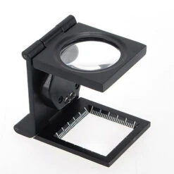 This compact, folding pick glass with LED lights is the perfect choice for counting threads. Marked with both fractional centimeters and inches.